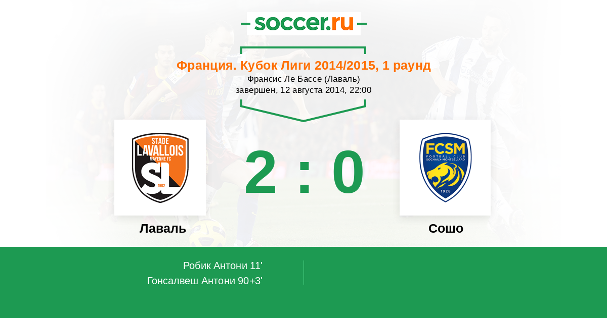 Протокол матча Лаваль против Сошо
