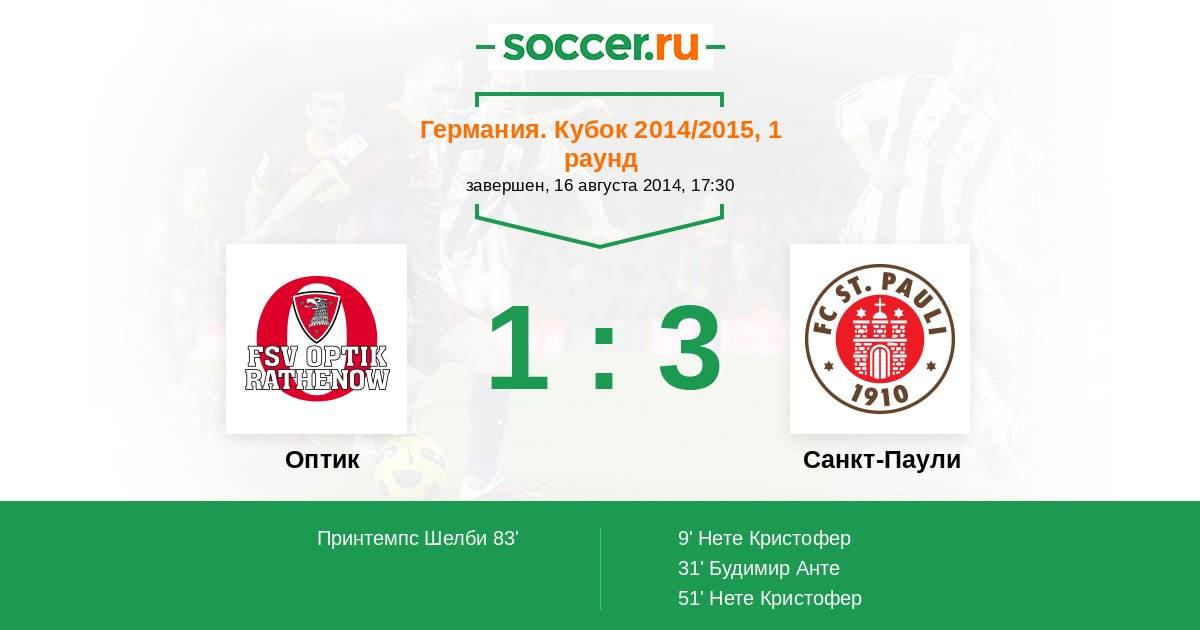 Протокол матча Оптик против Санкт-Паули