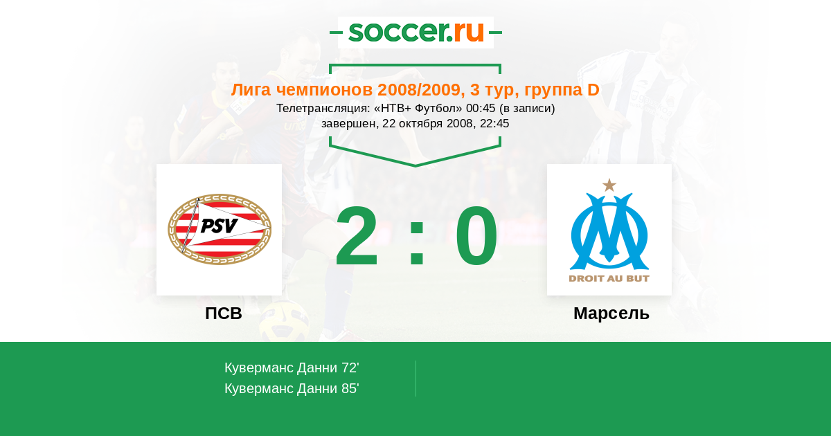 Протокол матча ПСВ против Марсель
