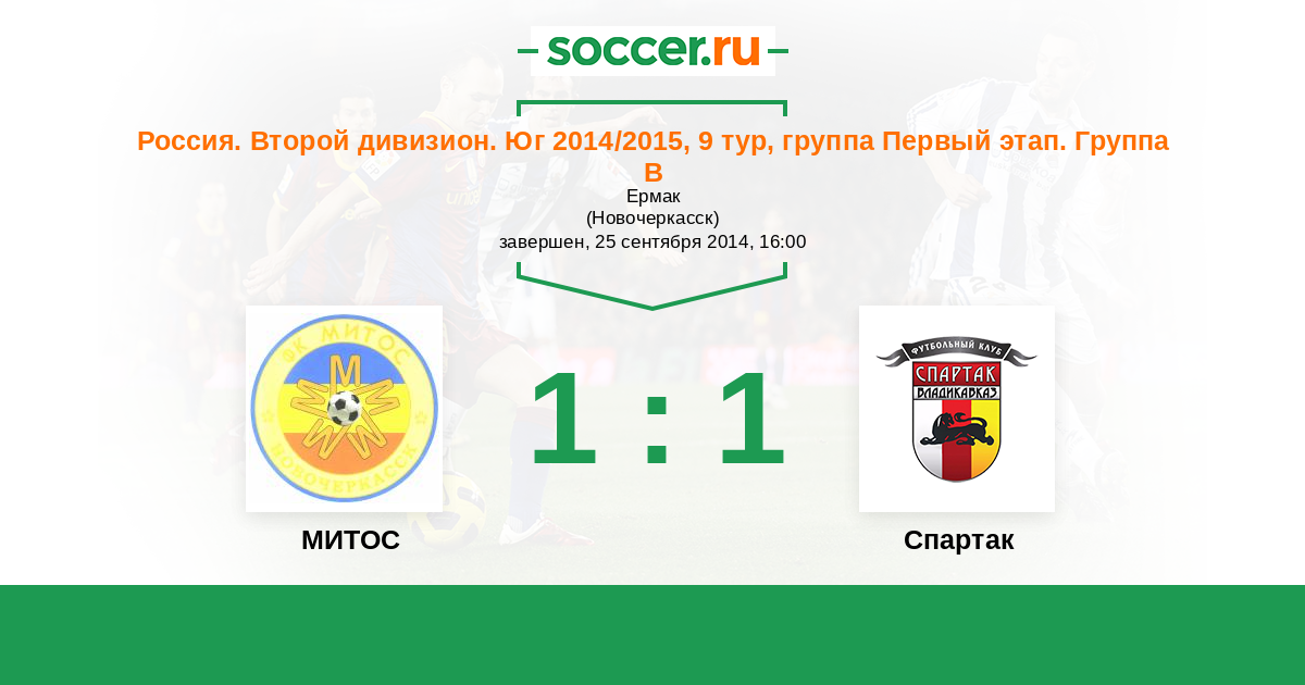 Россия. Вторая лига. Группа 1 25.08.2015 Алания Логотип футбольный клуб Алания (Владикавказ) 2:1 Логотип футбольный клуб МИТОС (Новочеркасск) МИТОС