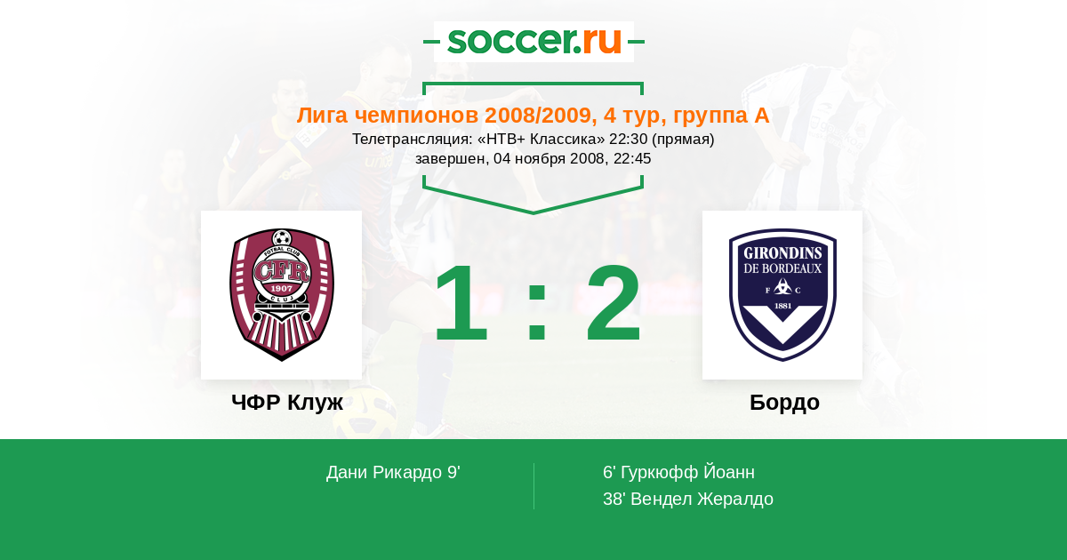 Протокол матча ЧФР Клуж против Бордо