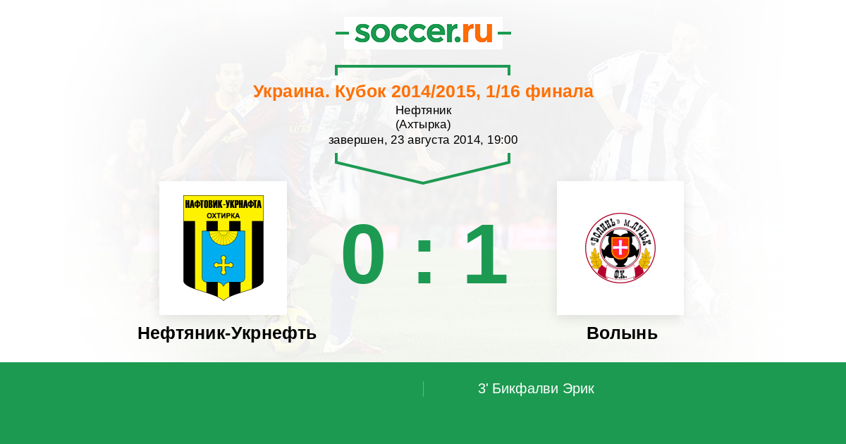 Протокол матча Нефтяник-Укрнефть против Волынь