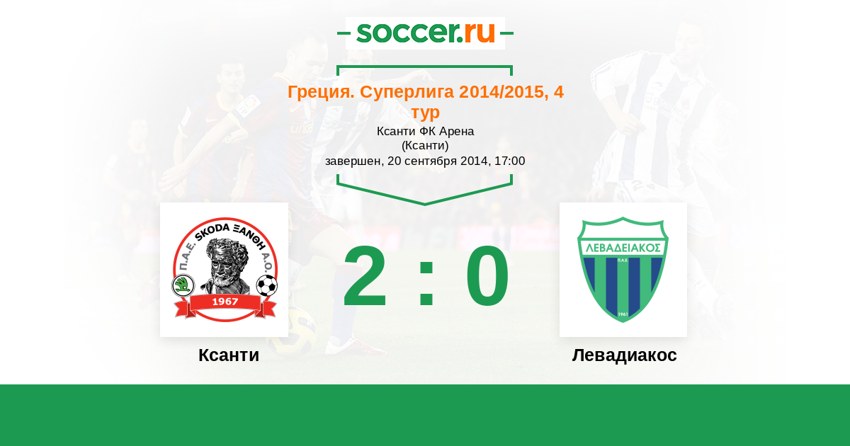 Греция. Суперлига 01.03.2014 Ксанти Логотип футбольный клуб Ксанти 4:1 Логотип футбольный клуб Левадиакос (Левадия) Левадиакос