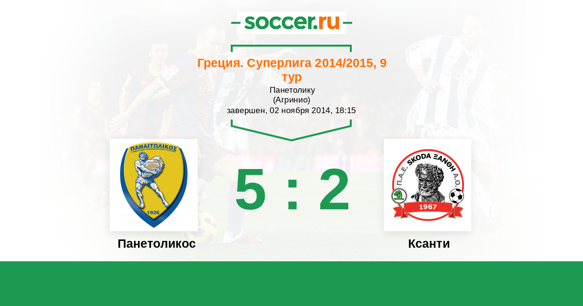 Греция. Суперлига 17.03.2014 Панетоликос Логотип футбольный клуб Панетоликос (Агринио) 1:0 Логотип футбольный клуб Ксанти Ксанти