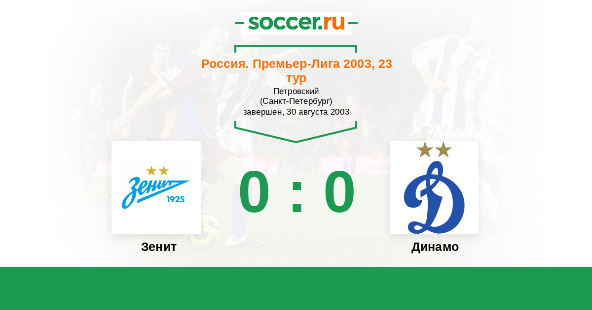 Россия. Премьер-Лига 30.08.2004 Динамо Логотип футбольный клуб Динамо (Москва) 0:2 Логотип футбольный клуб Зенит (Санкт-Петербург) Зенит