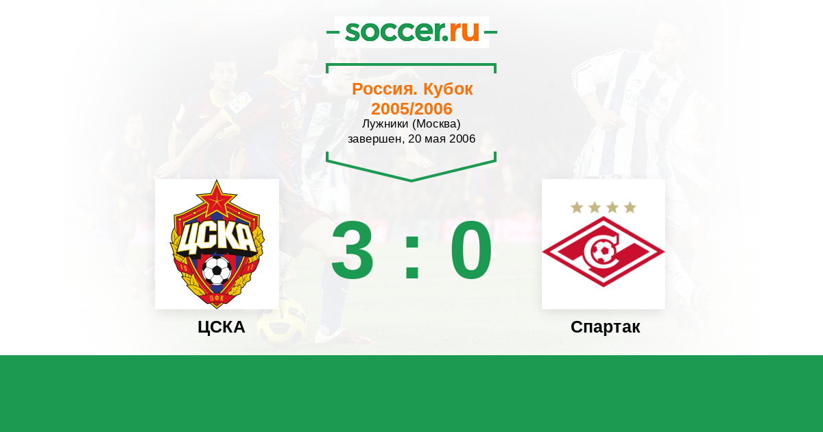 Россия. Премьер-Лига 22.05.2005 Спартак Логотип футбольный клуб Спартак (Москва) 1:3 Логотип футбольный клуб ЦСКА (Москва) ЦСКА