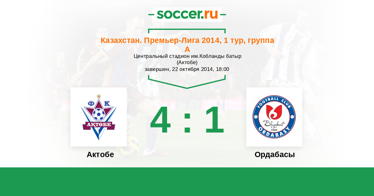 Казахстан. Премьер-лига 14.06.2014 Актобе Логотип футбольный клуб Актобе 1:1 Логотип футбольный клуб Ордабасы (Шымкент) Ордабасы