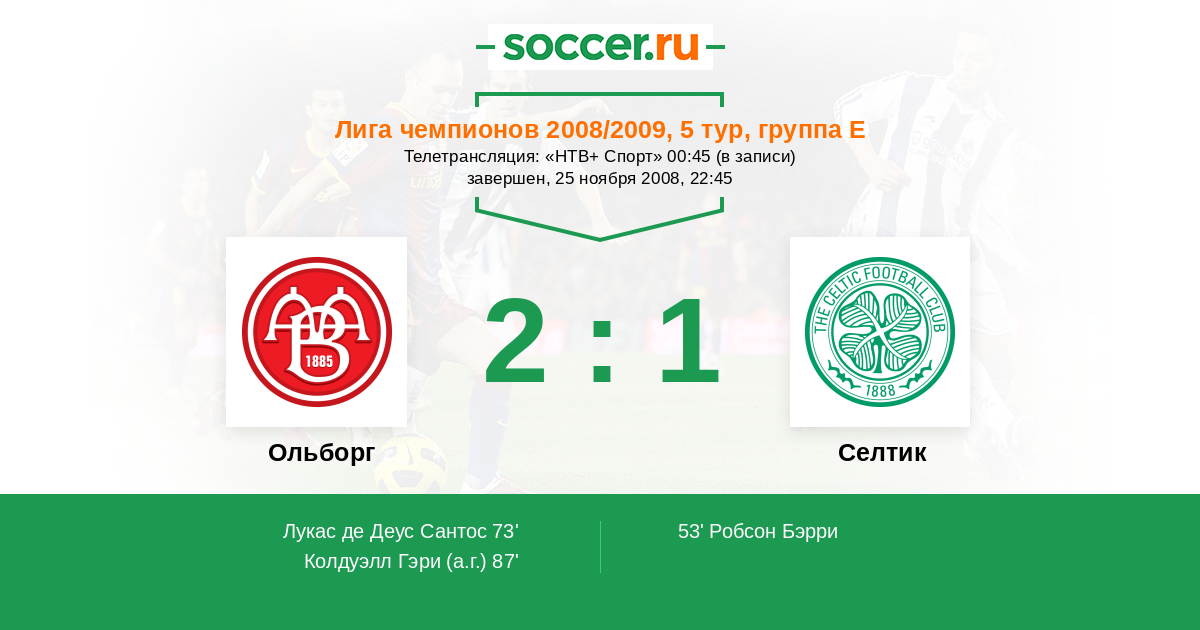 Протокол матча Ольборг против Селтик