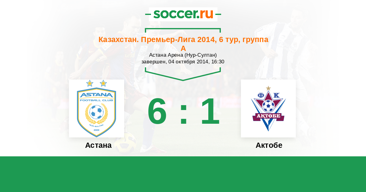 Казахстан. Премьер-лига 27.06.2014 Актобе Логотип футбольный клуб Актобе 1:1 Логотип футбольный клуб Астана Астана