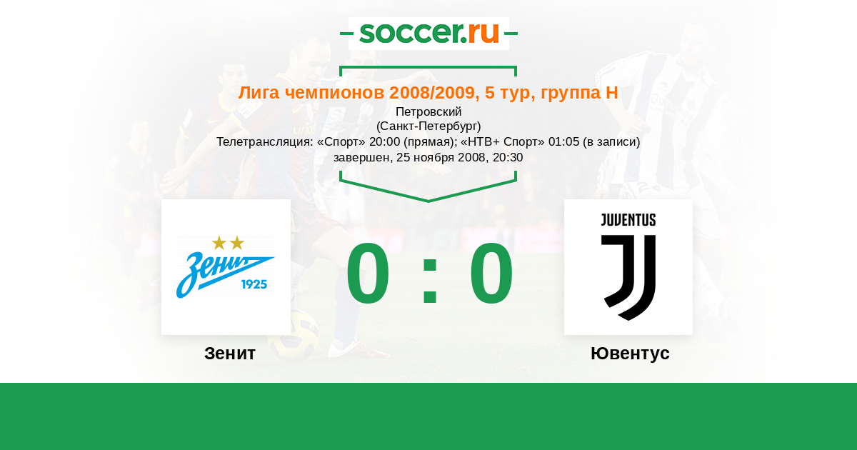Протокол матча Зенит против Ювентус