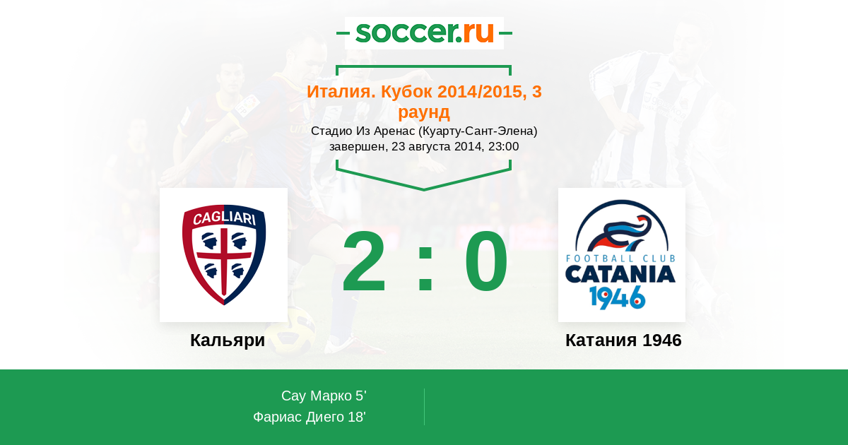 Протокол матча Кальяри против Катания 1946