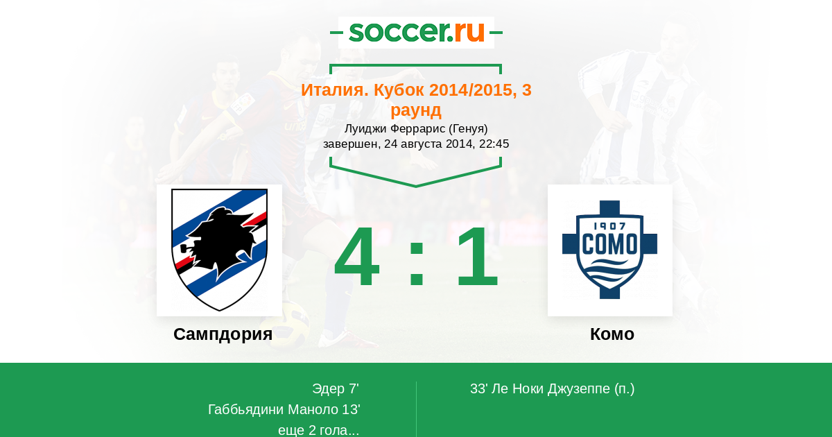 Протокол матча Сампдория против Комо