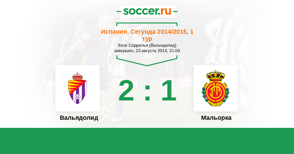 Испания. Сегунда 25.01.2015 Мальорка Логотип футбольный клуб Мальорка (Пальма-де-Мальорка) 1:5 Логотип футбольный клуб Вальядолид Вальядолид