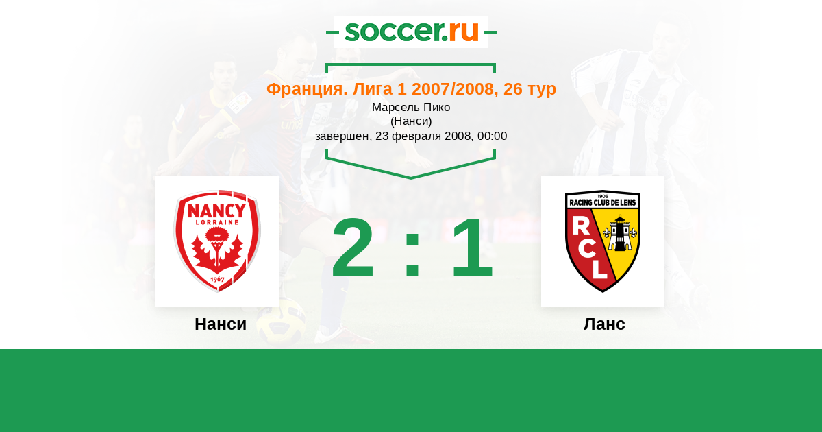 Франция. Лига 1 15.09.2007 Ланс Логотип футбольный клуб Ланс 1:0 Логотип футбольный клуб Нанси Нанси