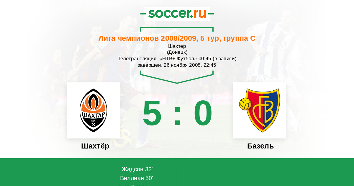 Протокол матча Шахтёр против Базель
