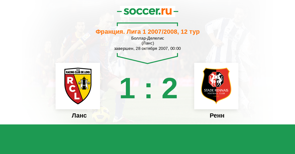 Франция. Лига 1 11.11.2006 Ланс Логотип футбольный клуб Ланс 0:0 Логотип футбольный клуб Ренн Ренн
