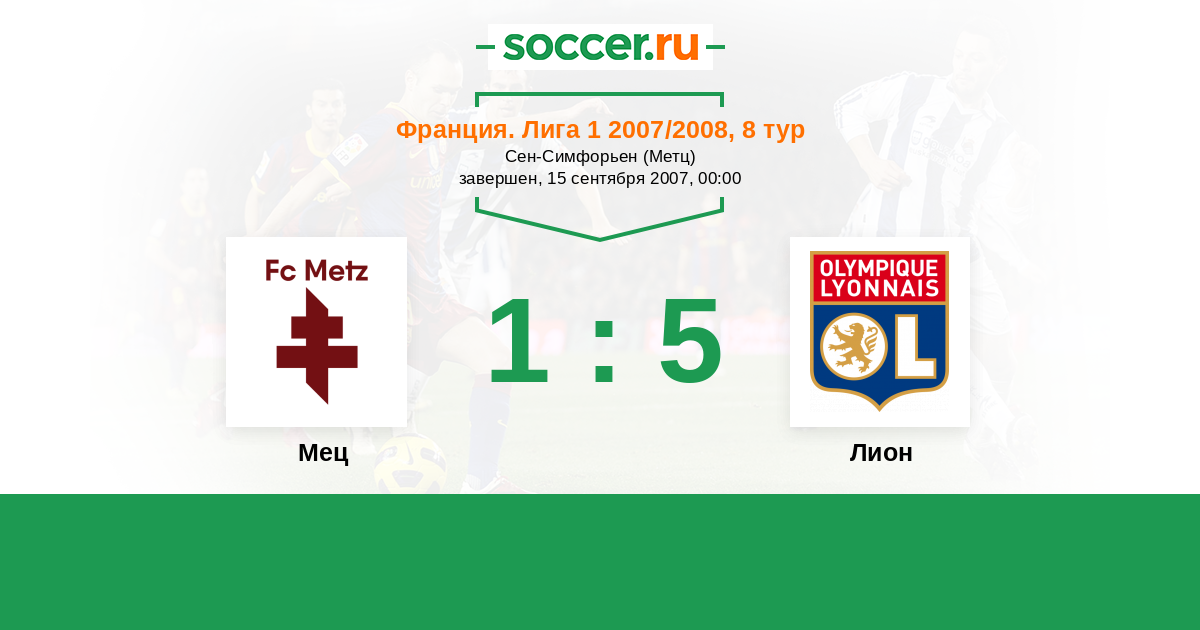 Франция. Лига 1 23.02.2008 Лион Логотип футбольный клуб Лион 2:0 Логотип футбольный клуб Мец Мец