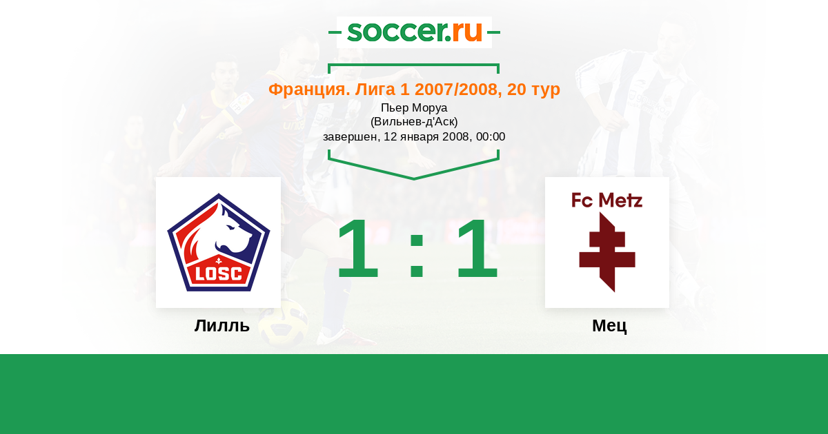 Франция. Лига 1 12.08.2007 Мец Логотип футбольный клуб Мец 1:2 Логотип футбольный клуб Лилль Лилль