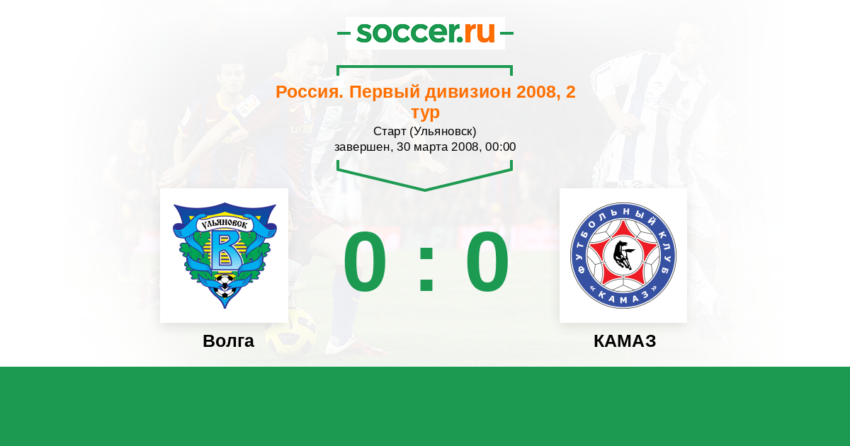 Россия. Первая лига 06.11.2008 КАМАЗ Логотип футбольный клуб КАМАЗ (Набережные Челны) 2:0 Логотип футбольный клуб Волга (Ульяновск) Волга