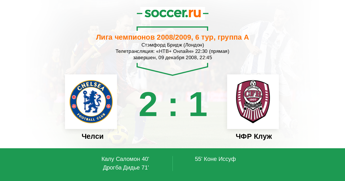 Протокол матча Челси против ЧФР Клуж