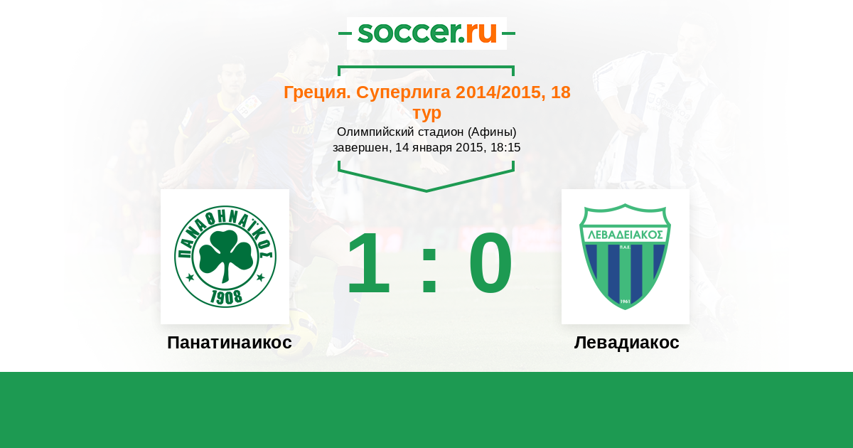 Греция. Суперлига 18.12.2013 Левадиакос Логотип футбольный клуб Левадиакос (Левадия) 0:4 Логотип футбольный клуб Панатинаикос (Афины) Панатинаикос