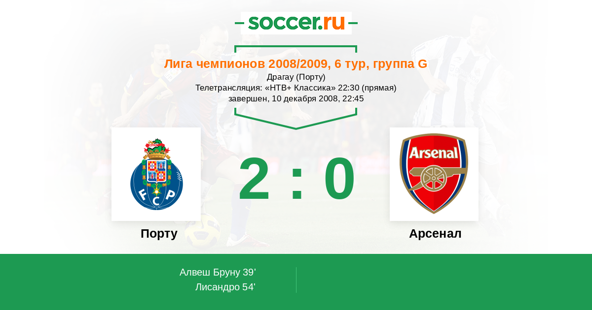 Протокол матча Порту против Арсенал