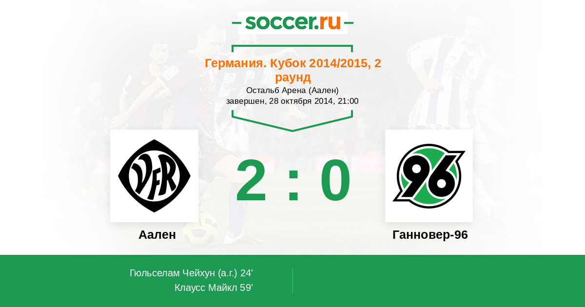 Протокол матча Аален против Ганновер-96