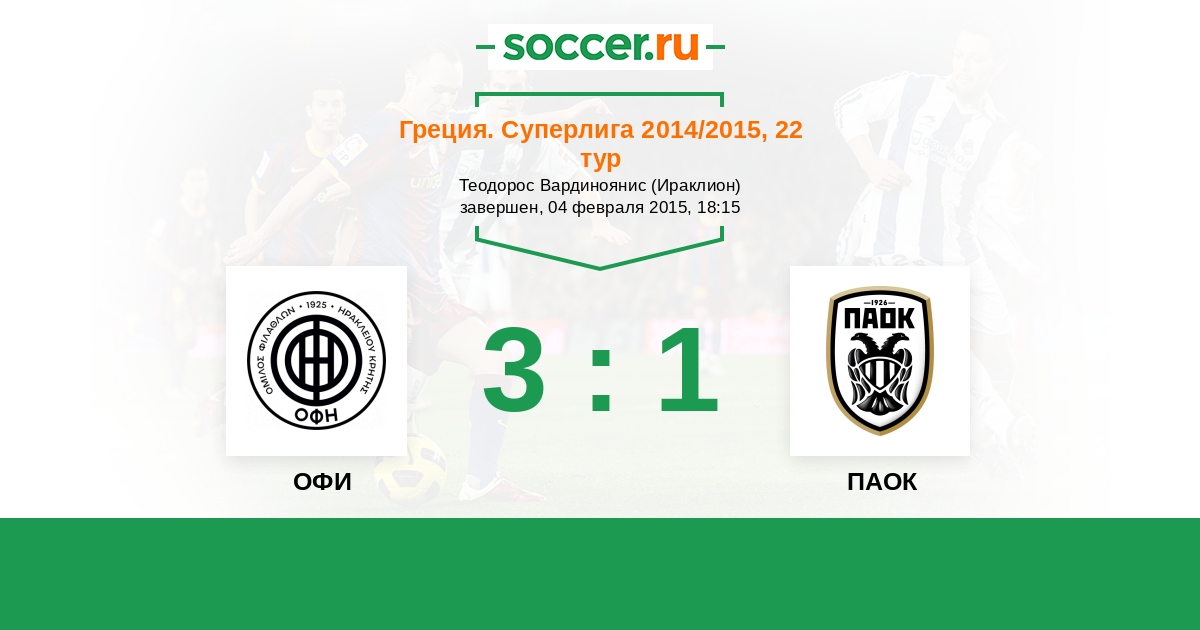 Греция. Суперлига 05.02.2014 ПАОК Логотип футбольный клуб ПАОК (Салоники) 5:0 Логотип футбольный клуб ОФИ (Ираклион) ОФИ