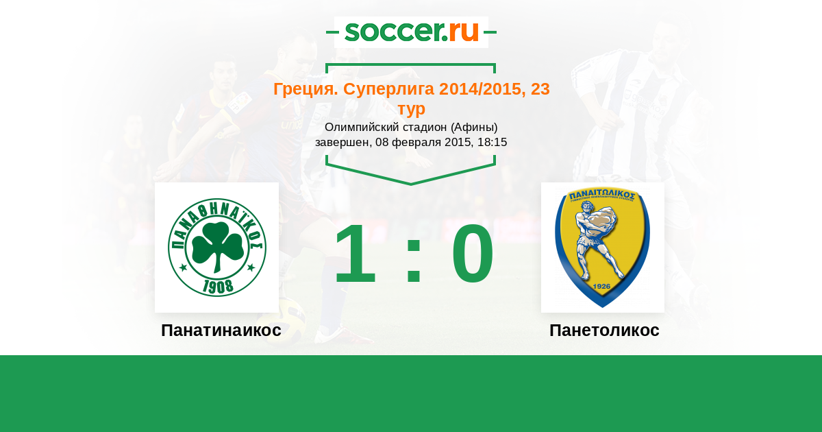 Греция. Суперлига 05.01.2014 Панетоликос Логотип футбольный клуб Панетоликос (Агринио) 1:0 Логотип футбольный клуб Панатинаикос (Афины) Панатинаикос