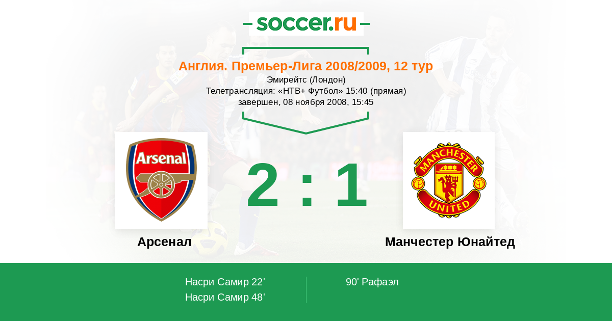Протокол матча Арсенал против Манчестер Юнайтед