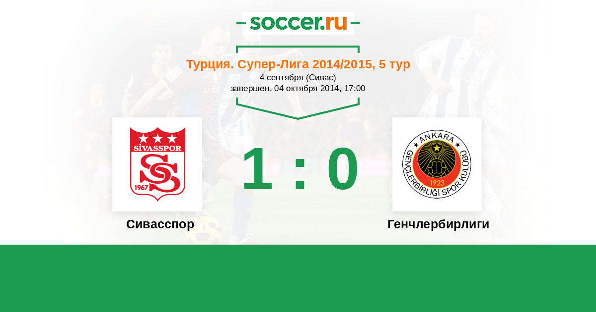 Турция. Суперлига 06.10.2013 Сивасспор Логотип футбольный клуб Сивасспор 2:0 Логотип футбольный клуб Генчлербирлиги (Анкара) Генчлербирлиги
