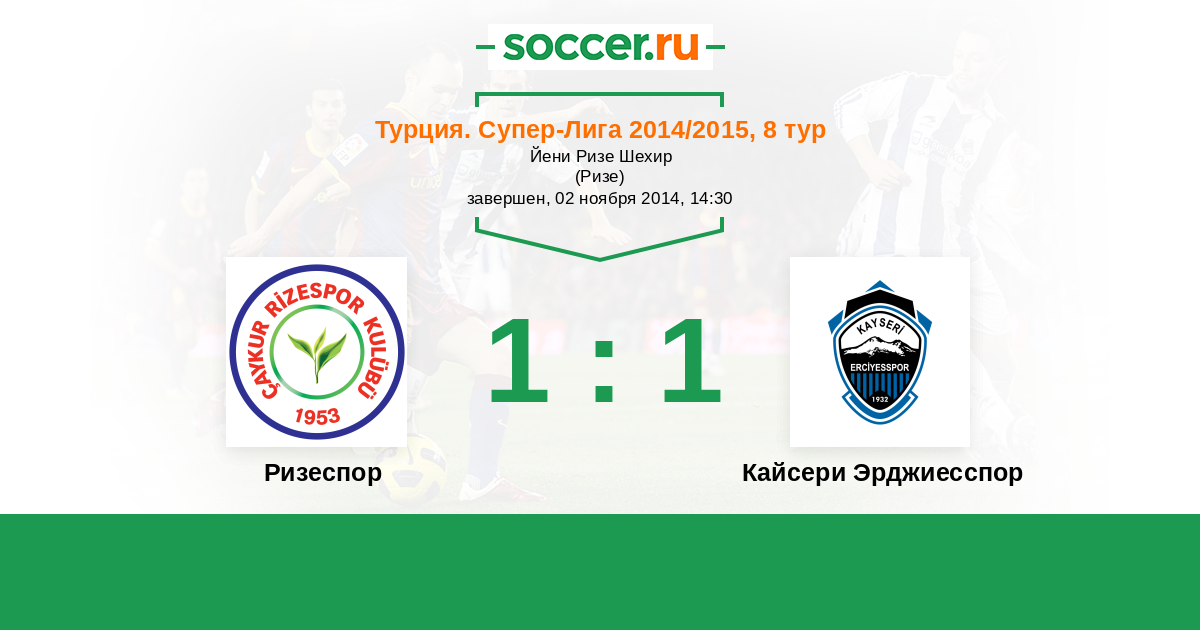История матча Ризеспор против Кайсери Эрджиесспор