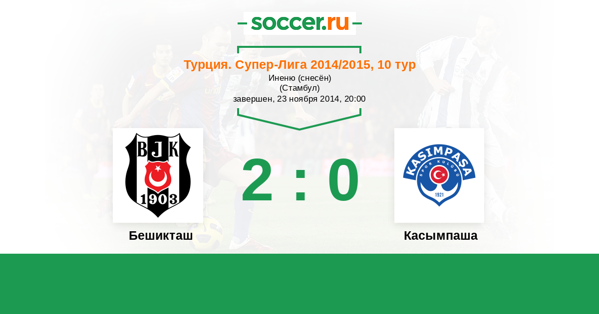 Турция. Суперлига 03.05.2014 Бешикташ Логотип футбольный клуб Бешикташ (Стамбул) 2:1 Логотип футбольный клуб Касымпаша (Стамбул) Касымпаша