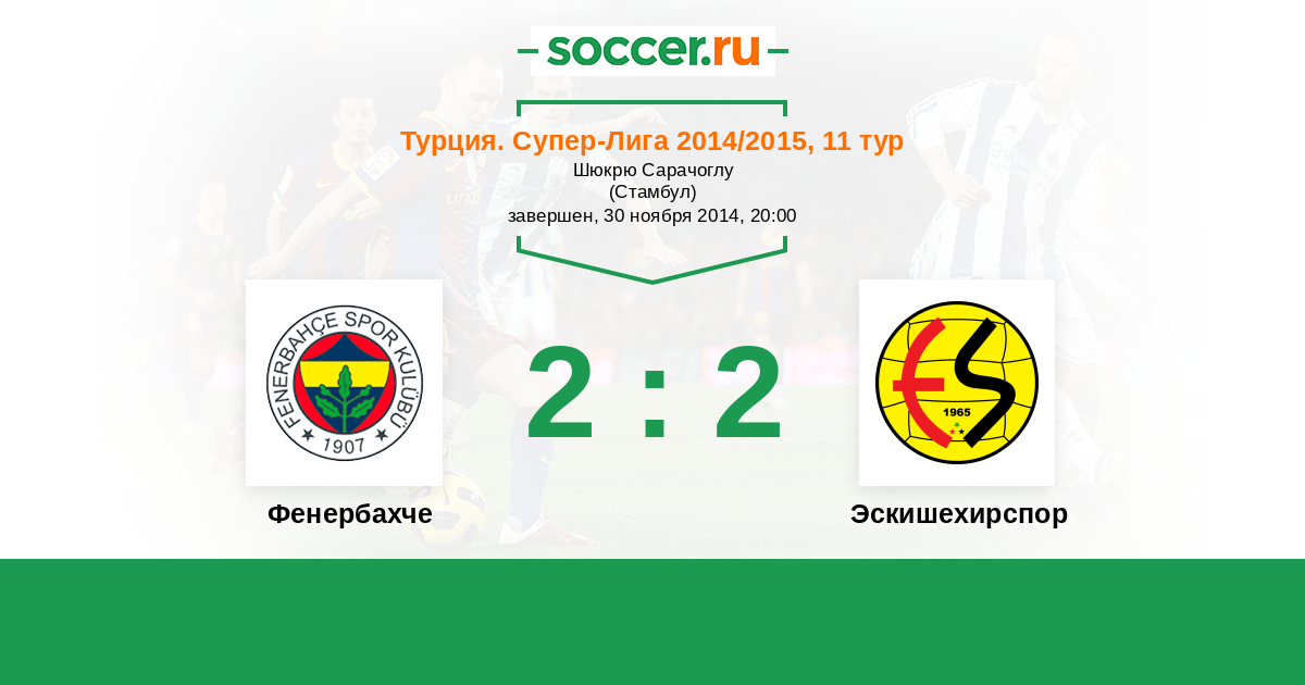 Турция. Суперлига 25.04.2015 Эскишехирспор Логотип футбольный клуб Эскишехирспор 1:1 Логотип футбольный клуб Фенербахче (Стамбул) Фенербахче
