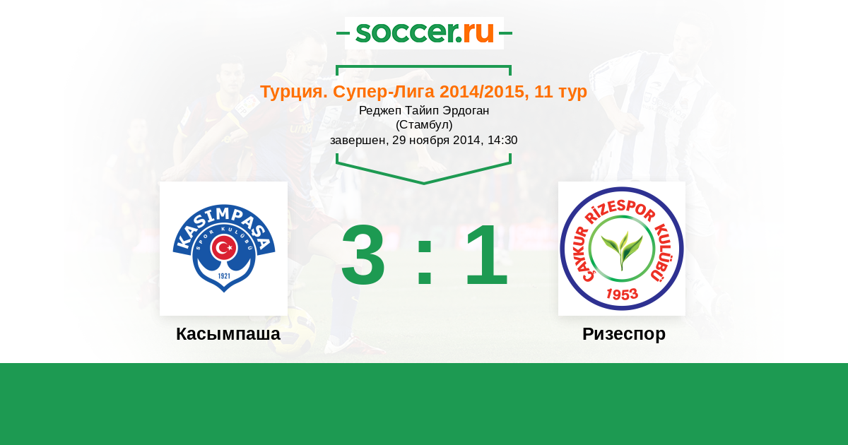 Турция. Суперлига 25.04.2015 Ризеспор Логотип футбольный клуб Ризеспор 1:3 Логотип футбольный клуб Касымпаша (Стамбул) Касымпаша