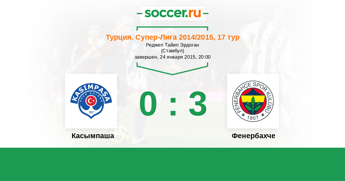 Турция. Суперлига 30.05.2015 Фенербахче Логотип футбольный клуб Фенербахче (Стамбул) 2:0 Логотип футбольный клуб Касымпаша (Стамбул) Касымпаша
