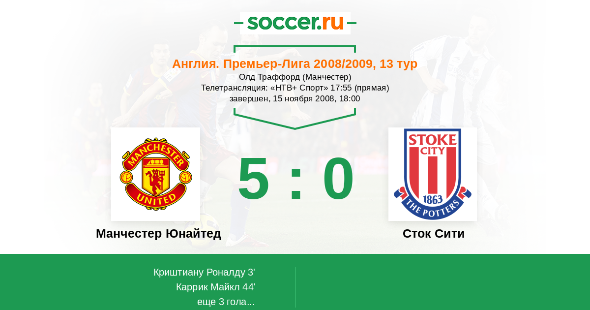 Протокол матча Манчестер Юнайтед против Сток Сити
