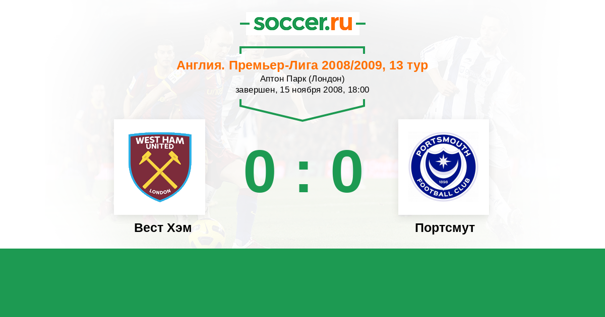 Протокол матча Вест Хэм против Портсмут