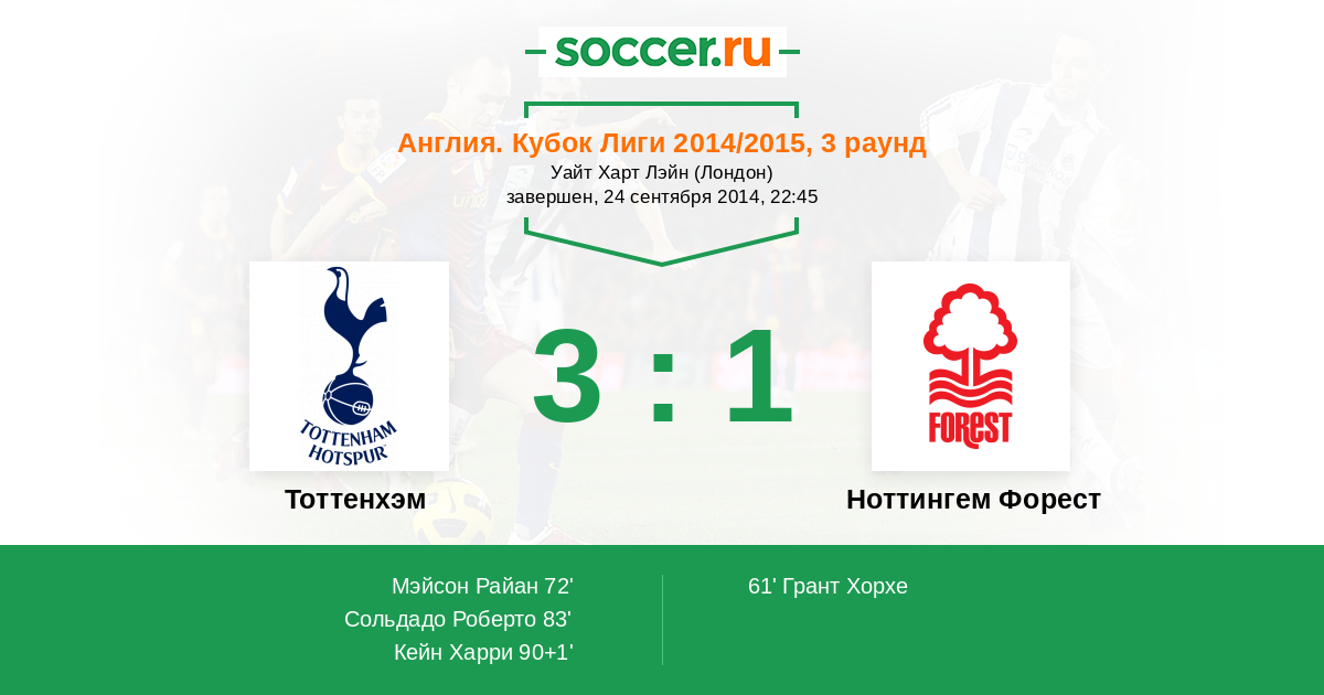 Протокол матча Тоттенхэм против Ноттингем Форест