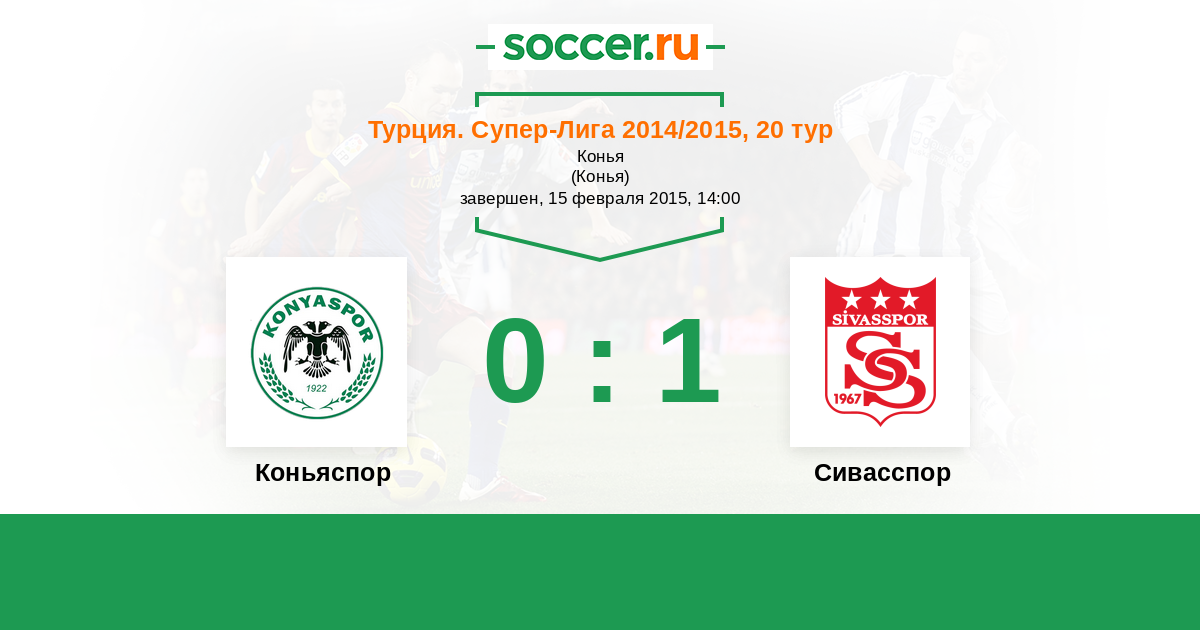 Турция. Суперлига 02.02.2014 Коньяспор Логотип футбольный клуб Коньяспор 3:0 Логотип футбольный клуб Сивасспор Сивасспор