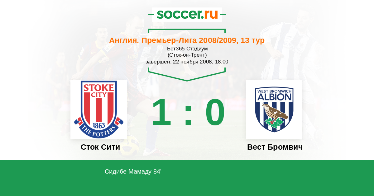 Протокол матча Сток Сити против Вест Бромвич