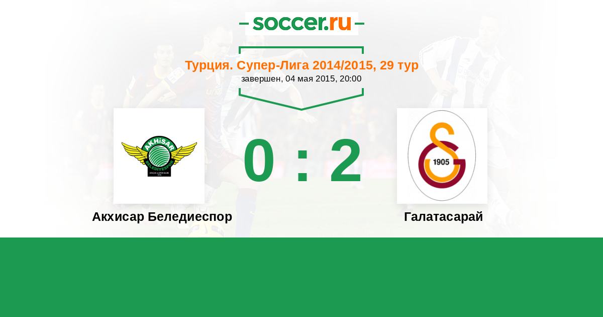 Турция. Суперлига 15.05.2016 Акхисар Беледиеспор Логотип футбольный клуб Акхисар Беледиеспор 1:2 Логотип футбольный клуб Галатасарай (Стамбул) Галатасарай