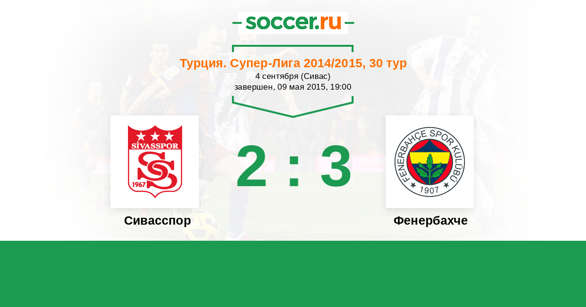 Турция. Суперлига 12.12.2014 Фенербахче Логотип футбольный клуб Фенербахче (Стамбул) 4:1 Логотип футбольный клуб Сивасспор Сивасспор
