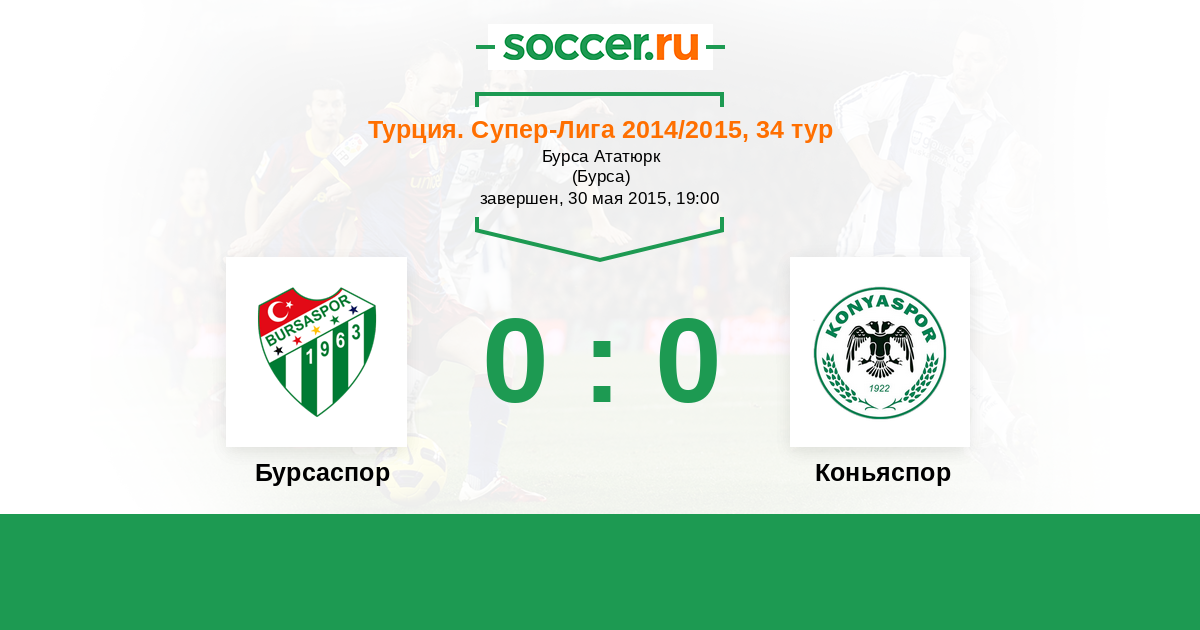 Турция. Суперлига 14.05.2016 Бурсаспор Логотип футбольный клуб Бурсаспор 1:1 Логотип футбольный клуб Коньяспор Коньяспор