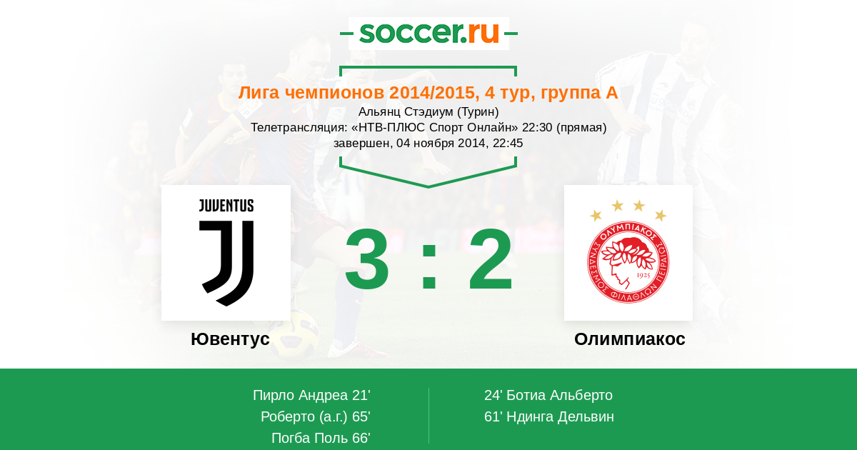 Протокол матча Ювентус против Олимпиакос