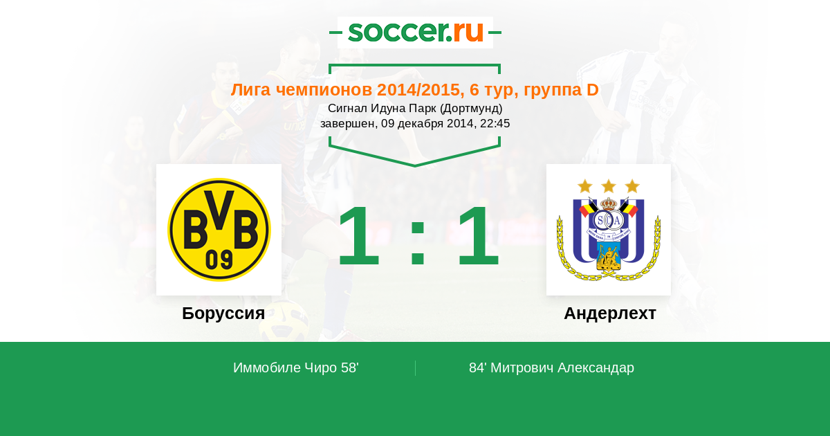 Протокол матча Боруссия против Андерлехт