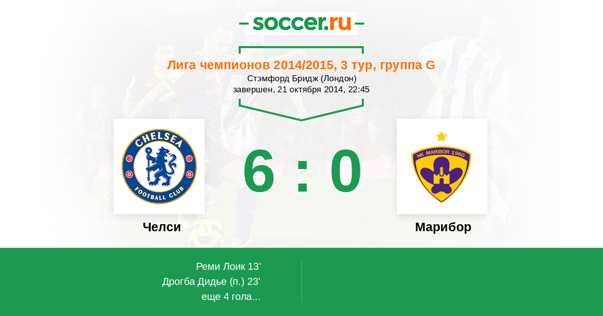 Протокол матча Челси против Марибор