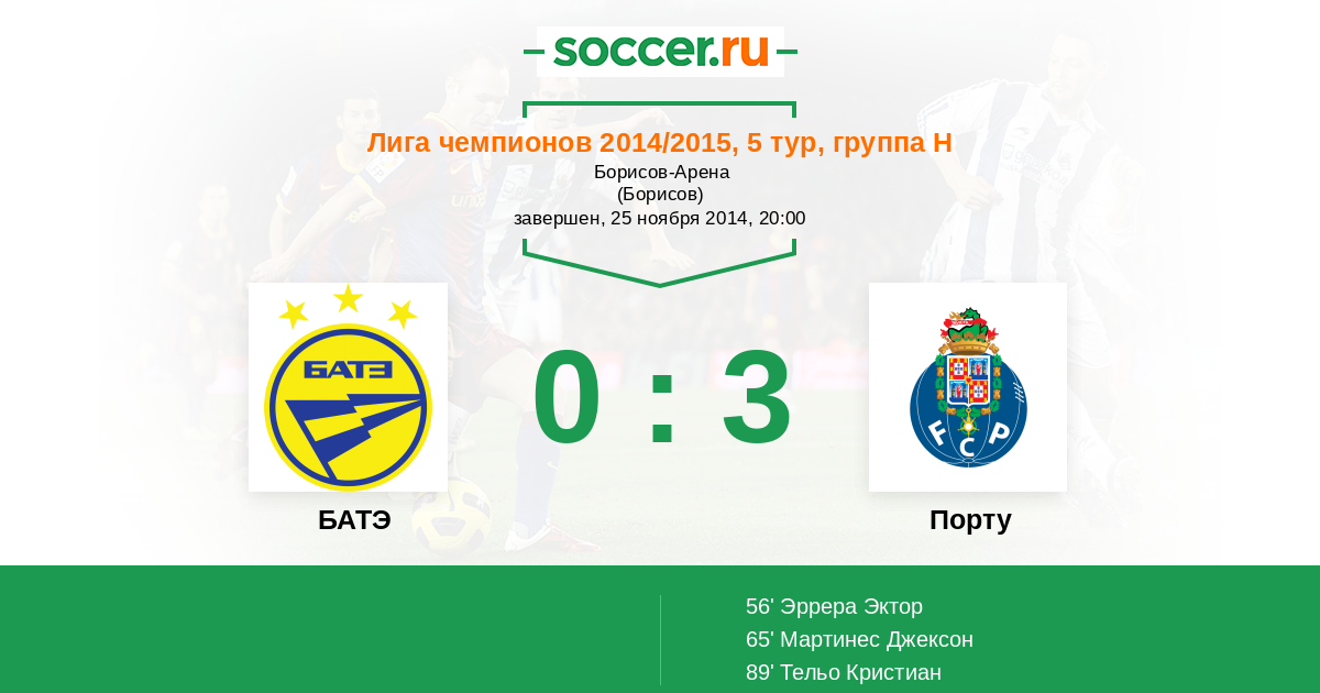Протокол матча БАТЭ против Порту