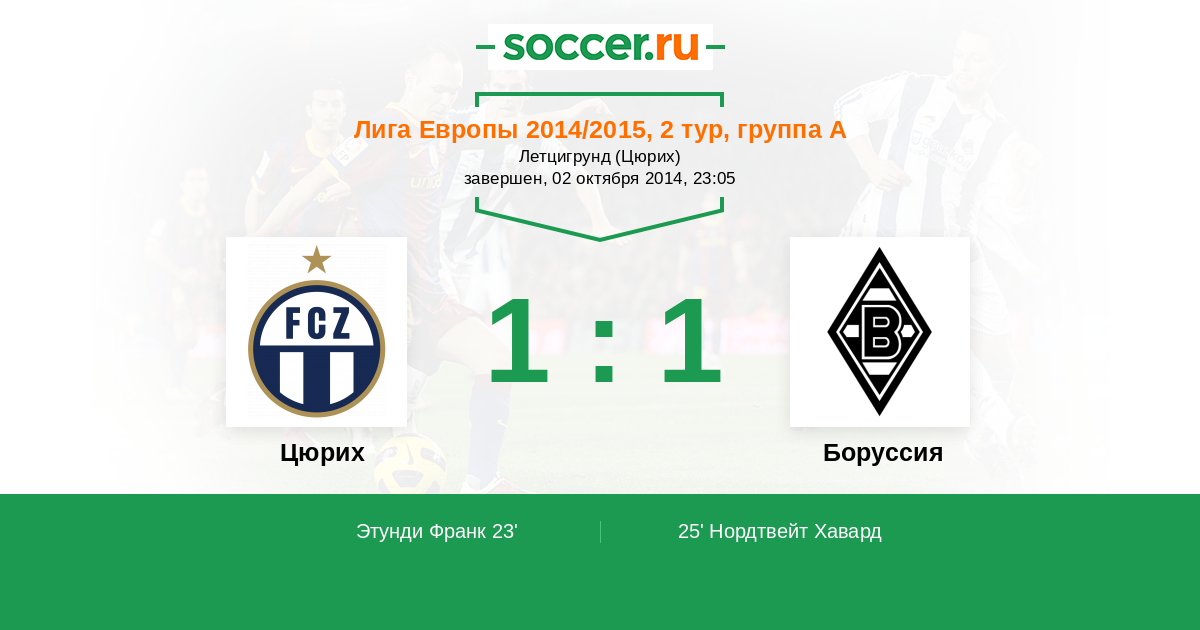Протокол матча Цюрих против Боруссия