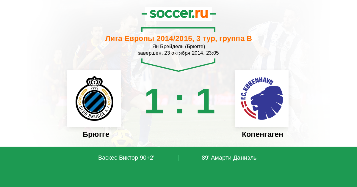 Протокол матча Брюгге против Копенгаген